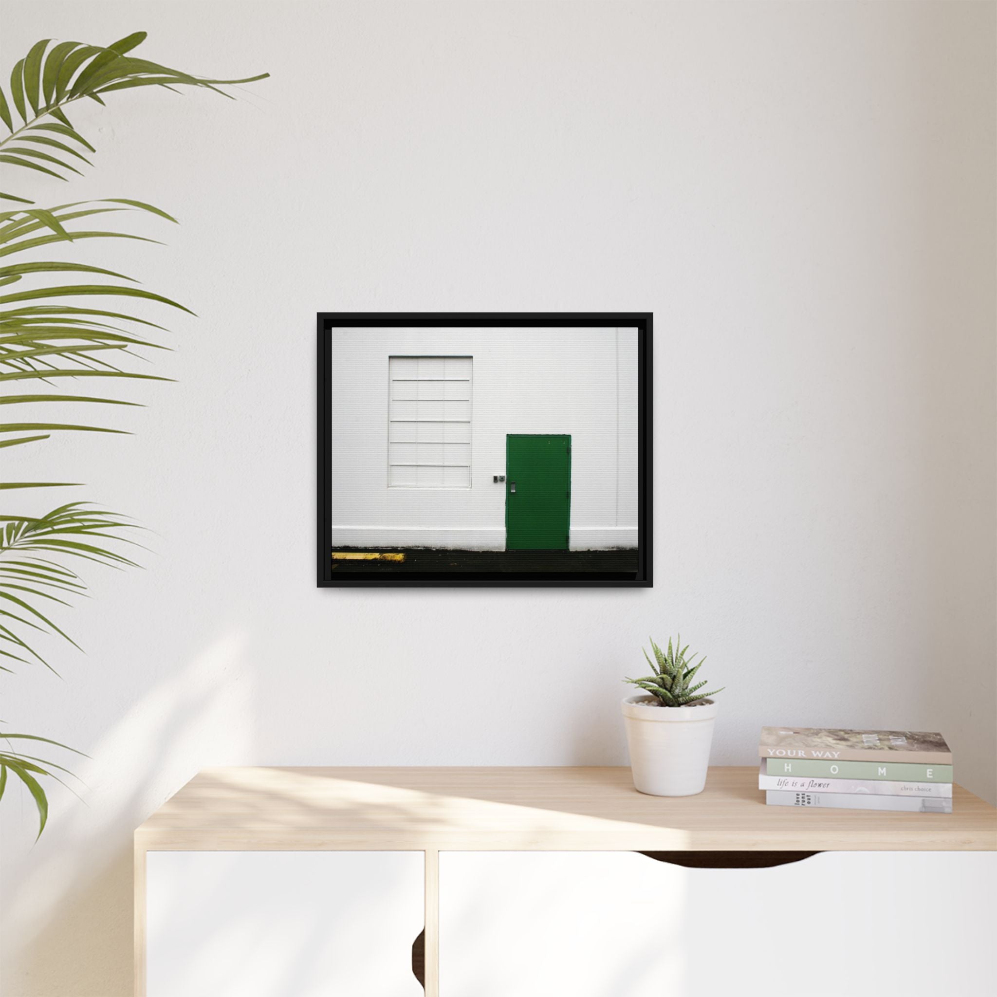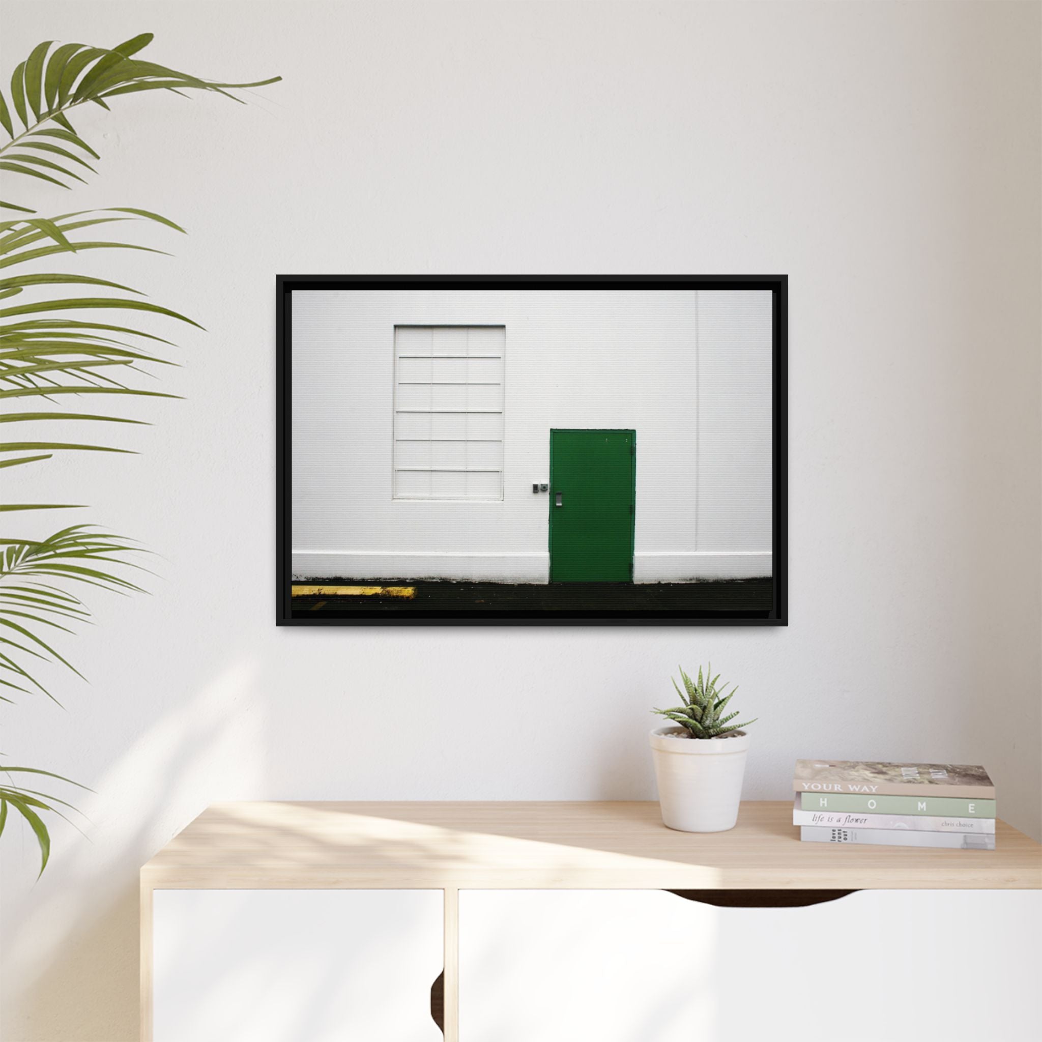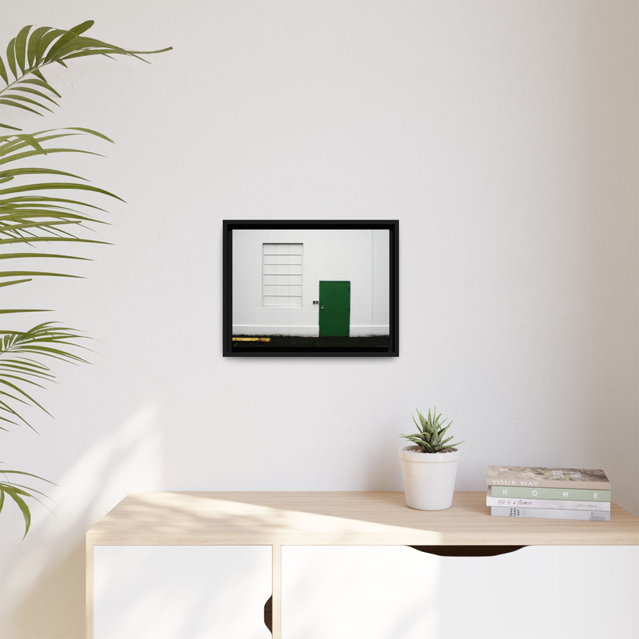 This fine art print features a striking green door against a crisp white wall, creating a calming and contemporary composition ideal for living rooms, offices, entryways, and creative spaces. Photographed by Jordan Iverson, this piece blends modern minimalism, subtle texture, and bold color contrast for a timeless look.