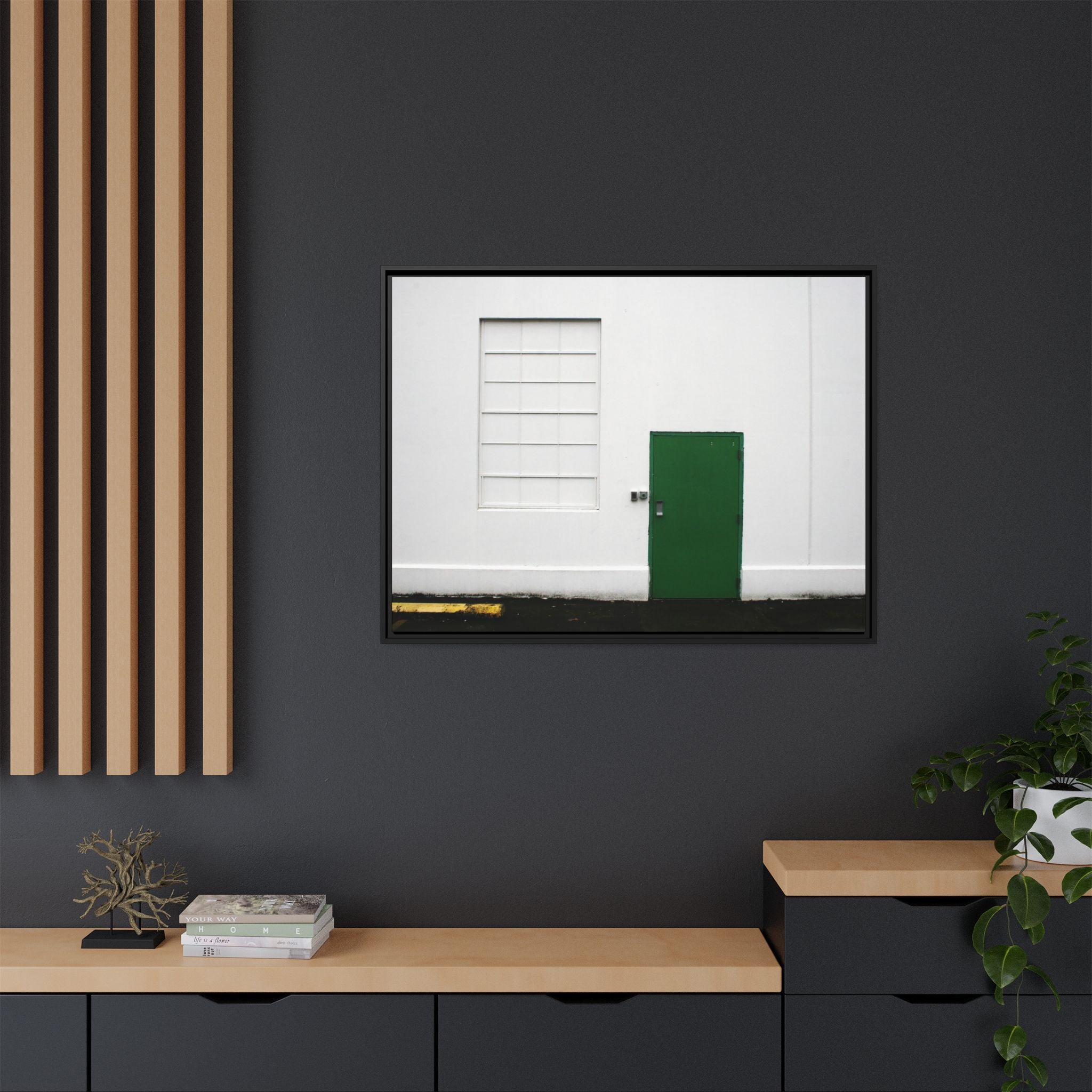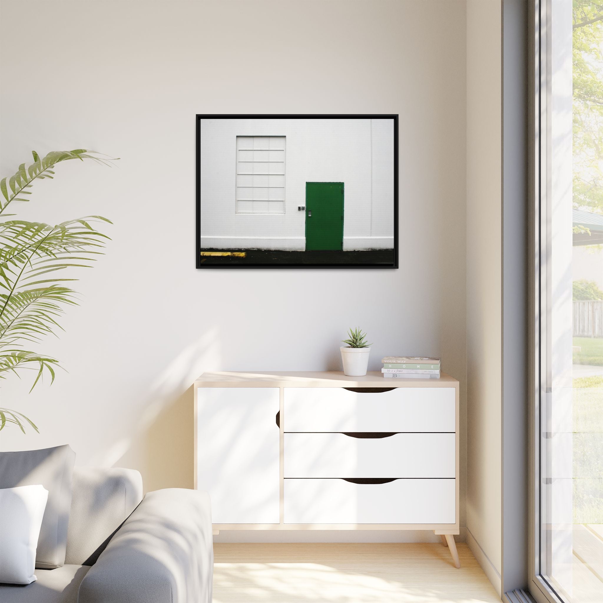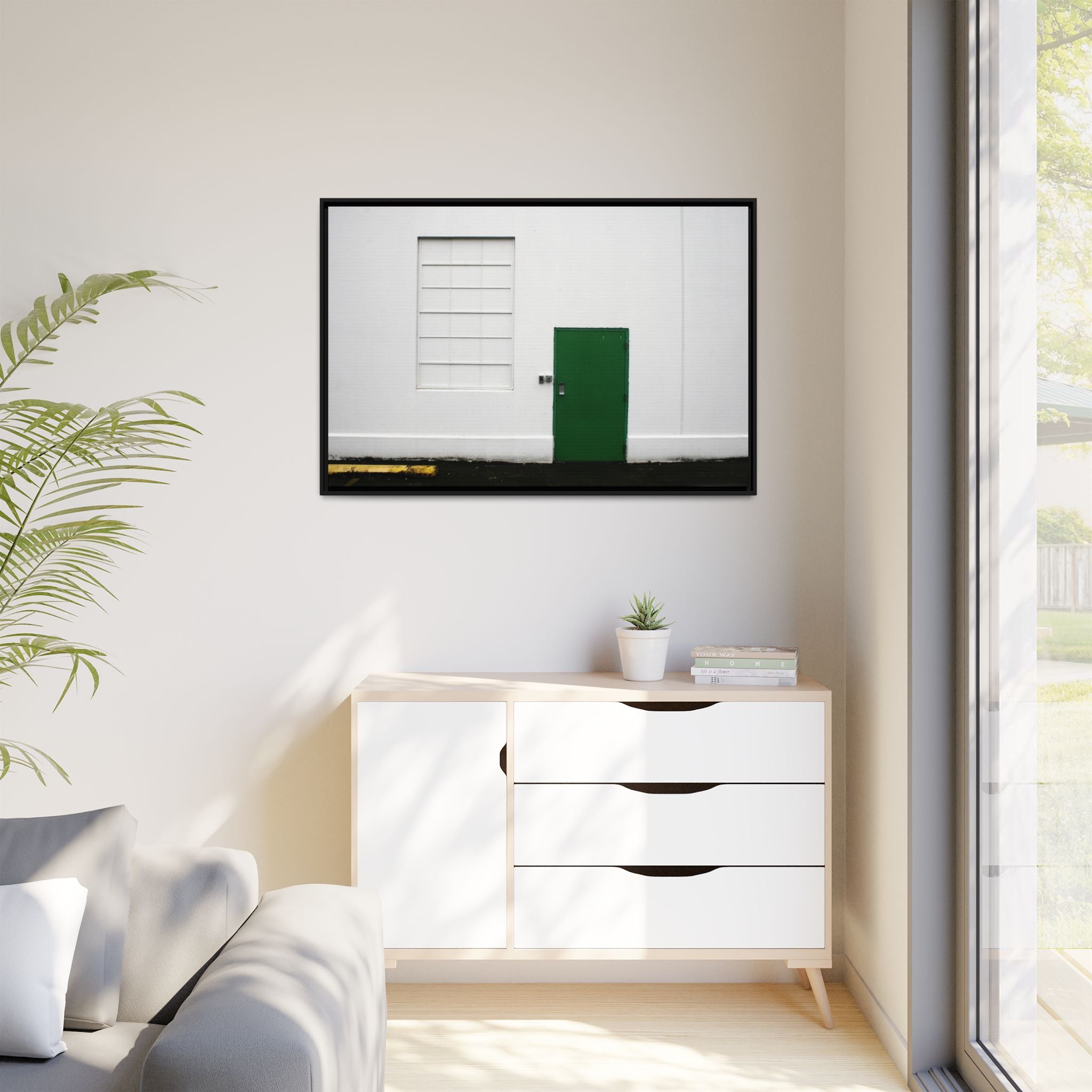 Minimalism + Green - a fine art print of an urban abstract street scene - Matte Canvas with a Black Frame