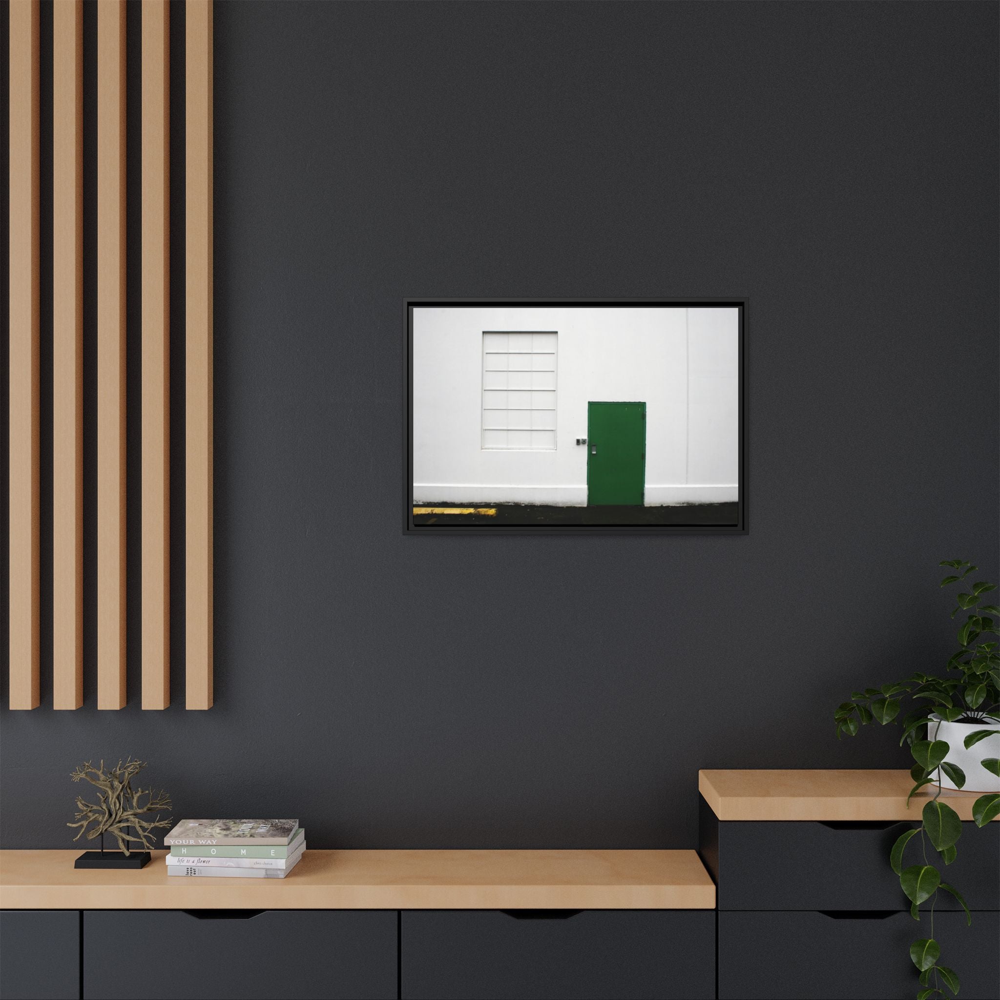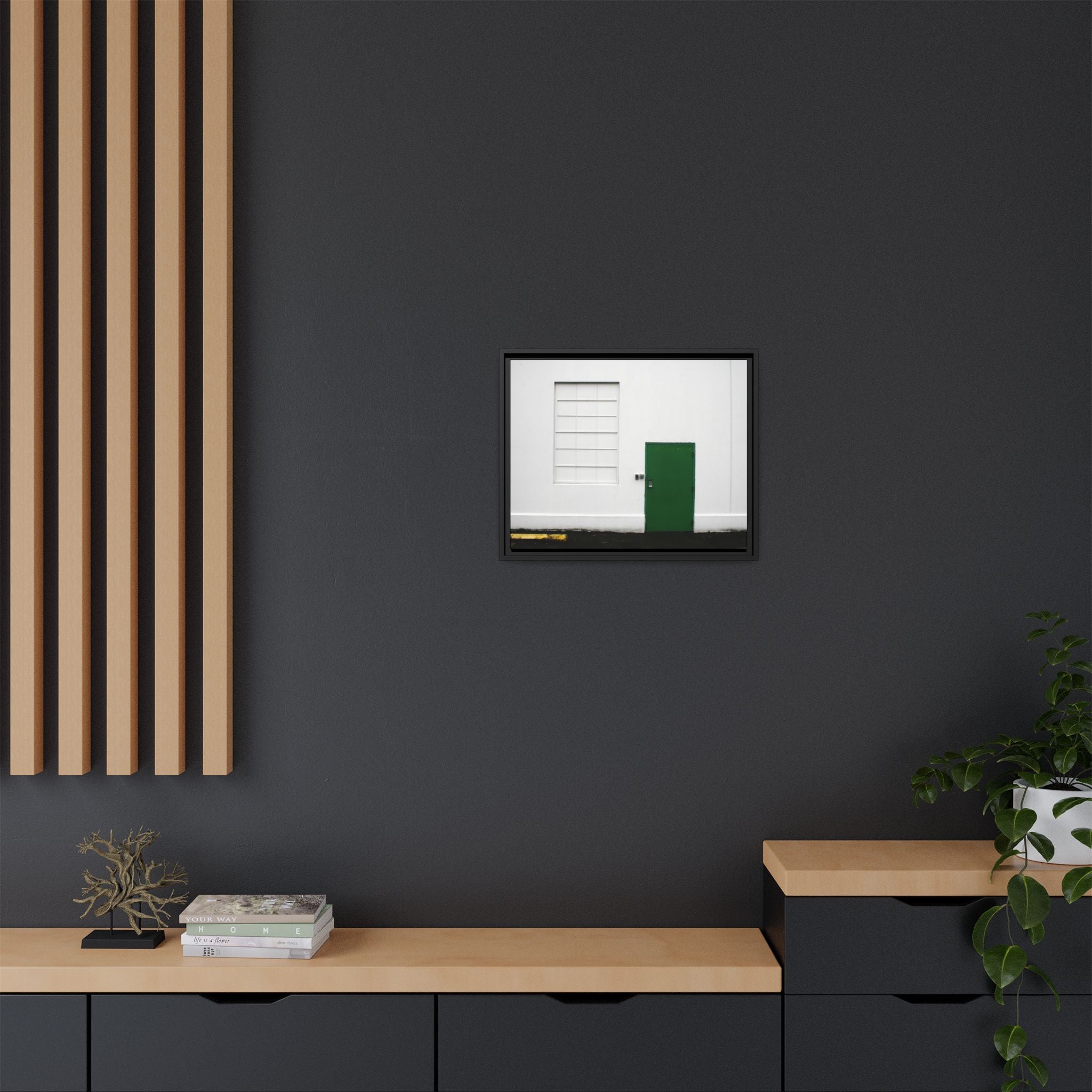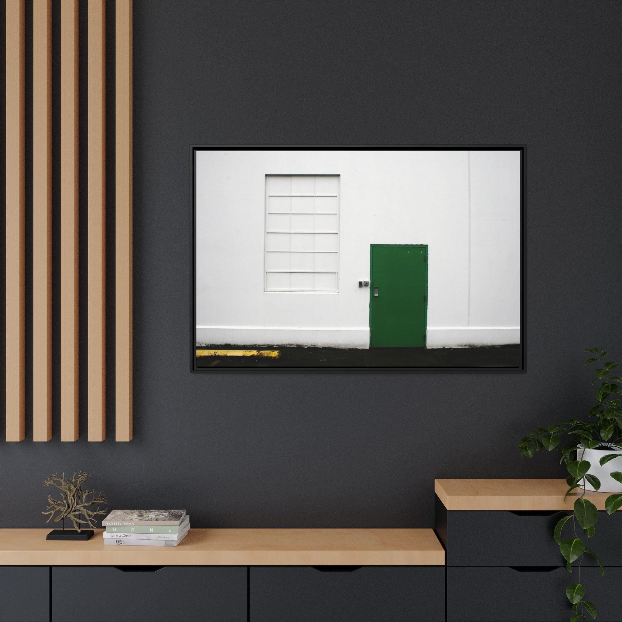 Minimalism + Green - a fine art print of an urban abstract street scene - Matte Canvas with a Black Frame