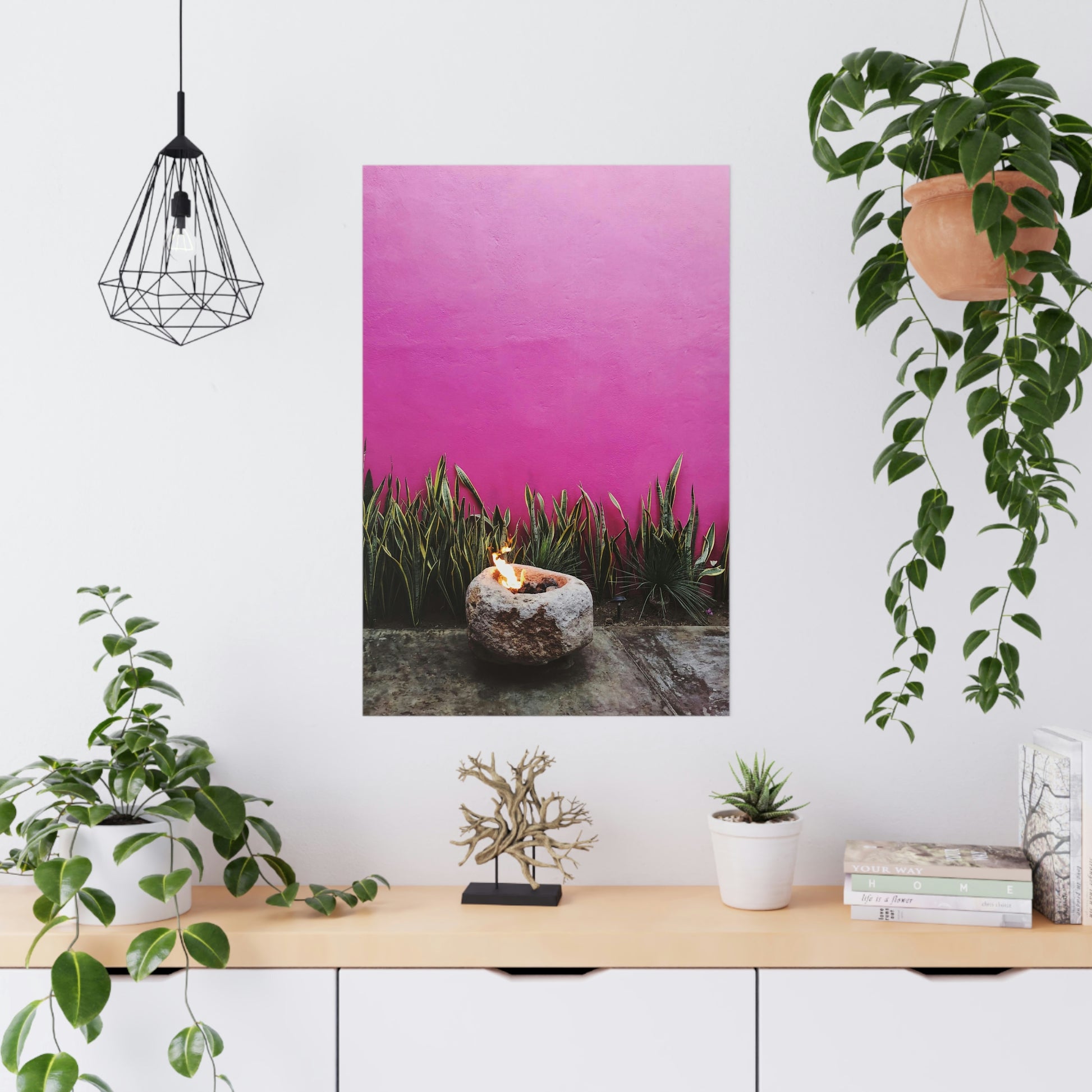 Hot Pink painted wall and organic green - Original photo print on Premium Matte Posters